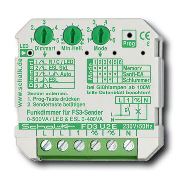 The FD3 U2E is extremely easy to program: simply teach-in one button of the transmitter to the dimmer. One-button operation (on/off/dim).